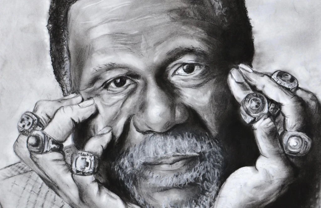 Charcoal Drawing of 11x NBA Champion, Bill Russell. Done in 2016 (High School)